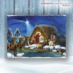 Textured foil, deep embossing and rich colour detail are the main focus of the religious Christmas design. The shimmering gold foil finishes the design perfectly.